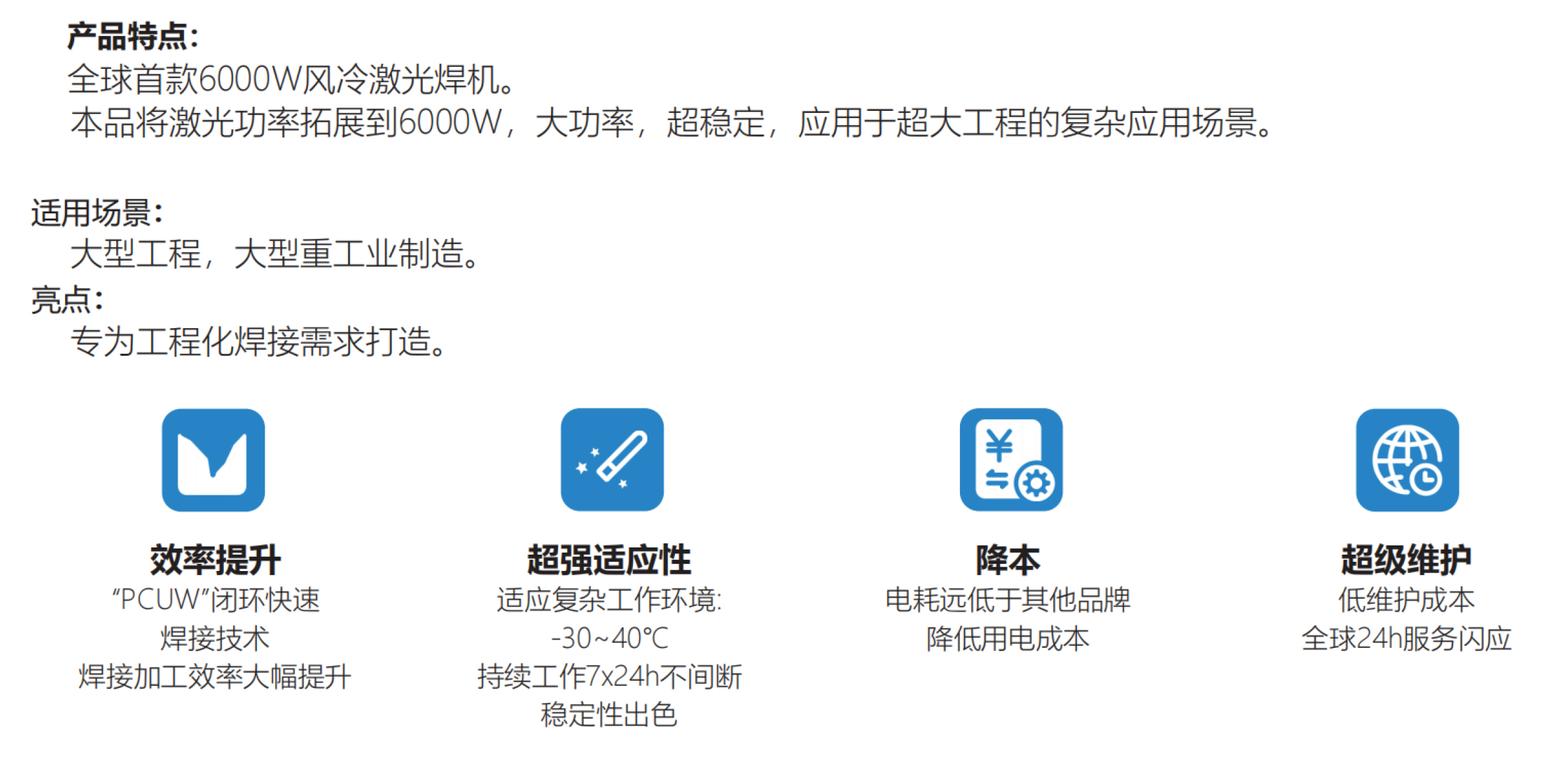 单模连续光纤激光器 多模连续光纤激光器 超高功率多模连续光纤激光器 绿光激光器 紫外激光器 二氧化碳激光管 射频激光器 Cub焊机 Pro焊机 Ultra焊机 Industry焊机 Engineer焊机 Cleaner清洗机