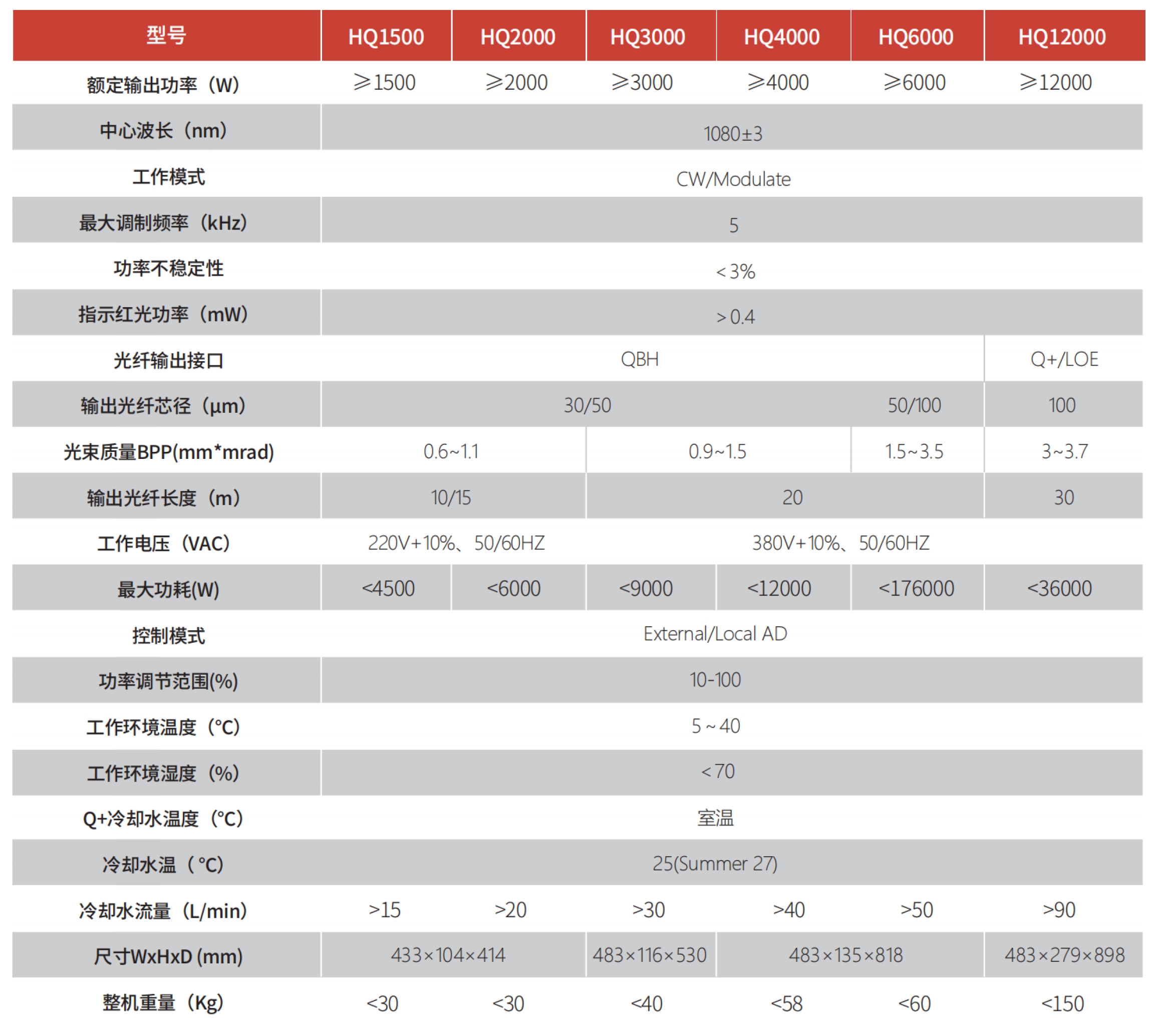 HQ系列高功率单模连续光纤激光器。完全由热刺激光自主研发和生产,通过解决限制高功率单模光纤激光器平均功率进一步提升的模式不稳定(TMI)、受激拉曼散射(SRS)、光束质量差等瓶颈问题,将单谐振腔、单横模激光的平均输出功率提升到了12000W。该系列产品集高平均功率、多重抗高反、优质光束质量、高电光转换效率于一体可广泛应用于精细切割、金属焊接、表面处理、3D打印与快速成型等多种场合。特别在金属厚板切割时,不仅切割速度快,而且板材切缝细、断面光亮,相比于市场上其他同类型激光器优势十分明显。